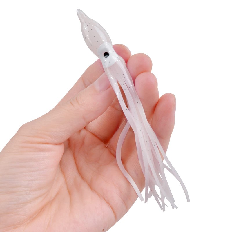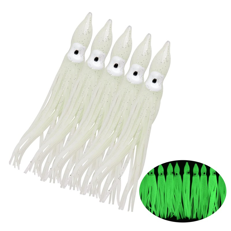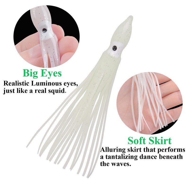 Fishing Squid Skirts Lures Octopus Skirts Trolling Lures Soft Plastic Fishing Tackle Squid Bait for Saltwater Bass Salmon Trout (White (Luminous), 3.54in - 30pcs)