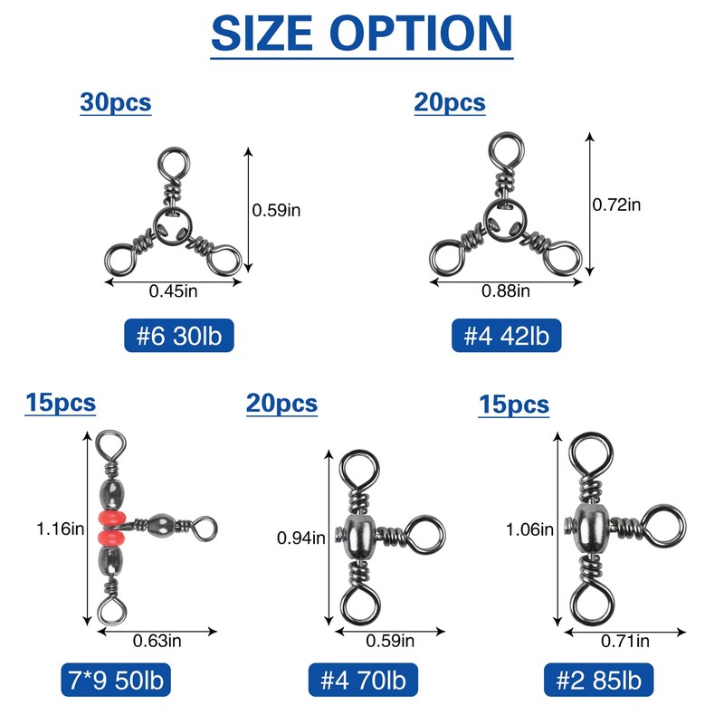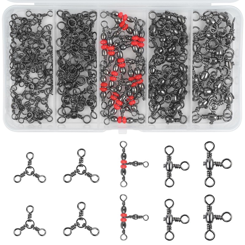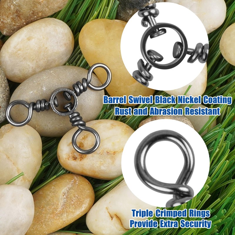 - SMOOTH ROTATION: Three way fishing swivel delivers 360 degree flexible rotation, can reduce the tangles and the twists in the line.