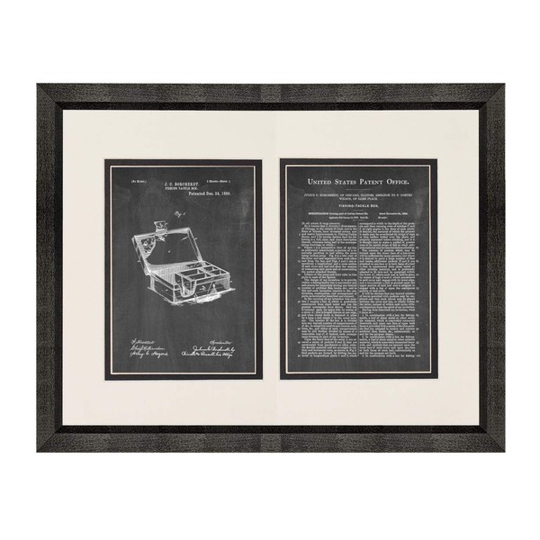 Fishing Tackle Box Patent Art Chalkboard Print in a Beveled Black Wood Frame with a Double Mat (16" x 20") M13720
