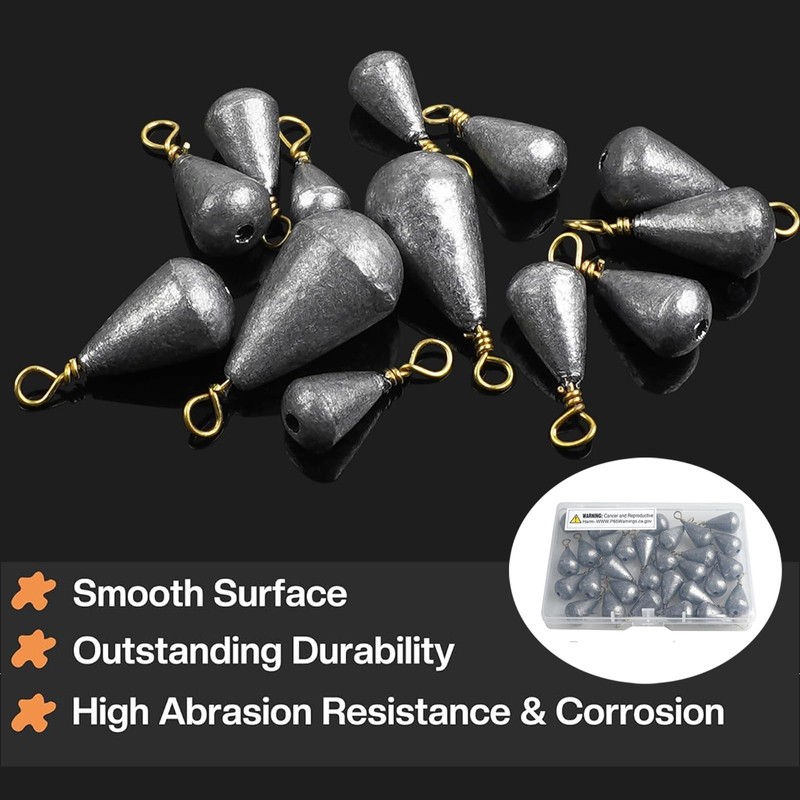 - Drop Fishing Weights: The drop-shaped design, low falling resistance, fast sinking speed, in the bottom of the water can effectively avoid obstacles, helping to hold bait against heavy waves and currents.