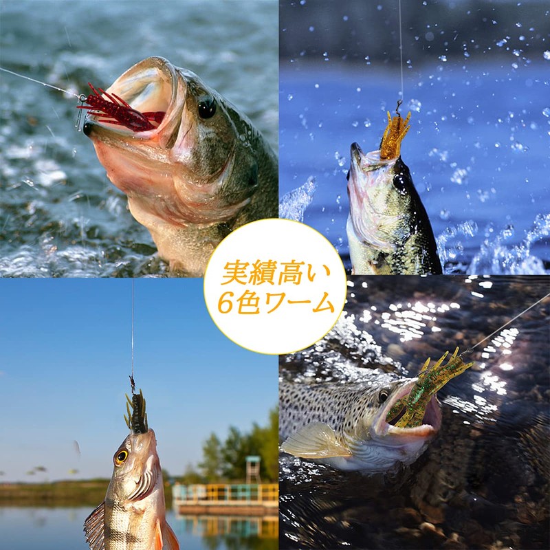 Fishing Worm Set, Rockfish, Root Fish, Chinu, Blackfish, Fish, Fish, Fish, Fish, Bass, Crowworm, Lure Fishing, Worm, 3.2in Worm Hook, Set of 54
