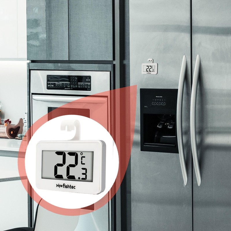 FISHTEC Electronic Refrigerator Thermometer - Triple Hanging System: Hook, Holder, Magnetic. Integrated Probe - Positive and Negative Temperature - Degrees Celsius and Fahrenheit