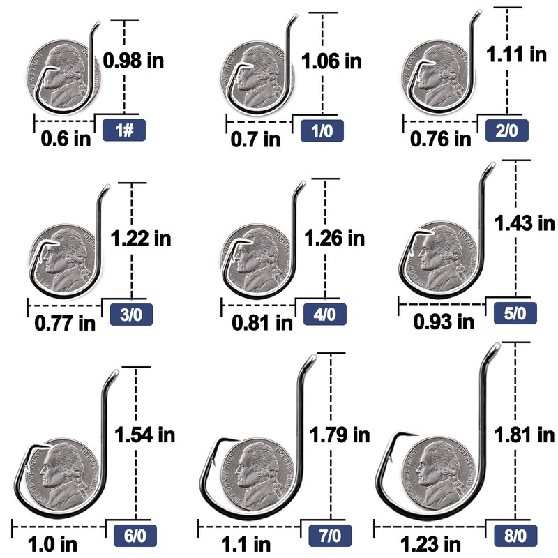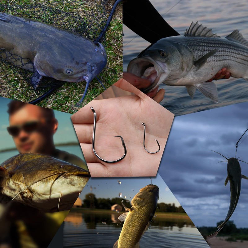 - [Designed for live bait] Circle hooks are often used with live bait, and can be set up with catfish rigs, Florida pompano rigs, Texas rigs and catfish troline etc. It is an ideal choice for catching big fish such as catfish, bass, carp, etc.