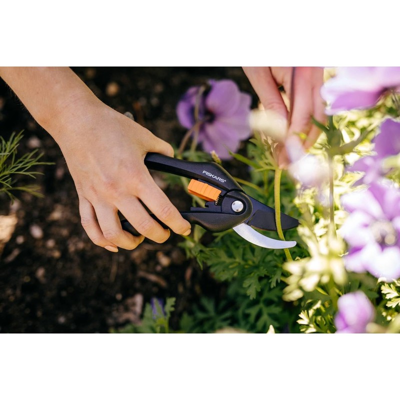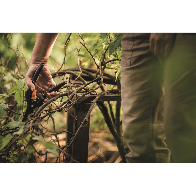 Fiskars Bypass Secateurs for Fresh Branches and Branches, Non-Stick, High Quality Steel Blades, Length: 20 cm, Black/Orange, SingleStep, P26, 1000567