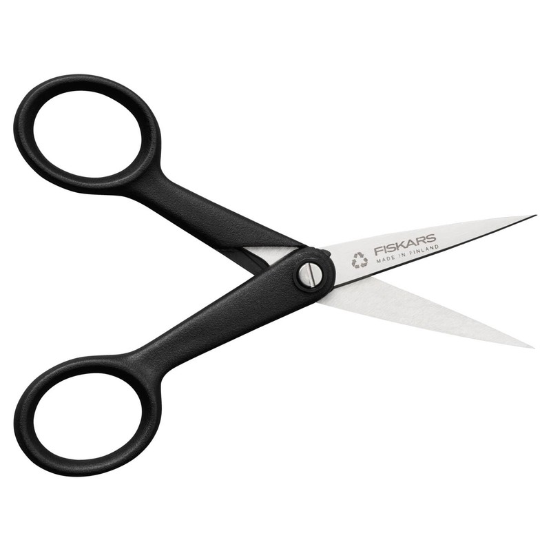 Fiskars Renew 13cm Needlework Scissors – Small Sharp Embroidery Craft Shears, Recycled Stainless-Steel Blade & Ergonomic Handle - Black