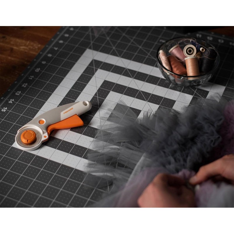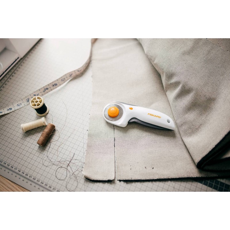 - Contents: 1x Fiskars trigger rotary cutter Ø 45 mm, Dimensions (H x L x W): 2.4 x 16.5 x 6.7 cm, Weight: 150 g, 1003910