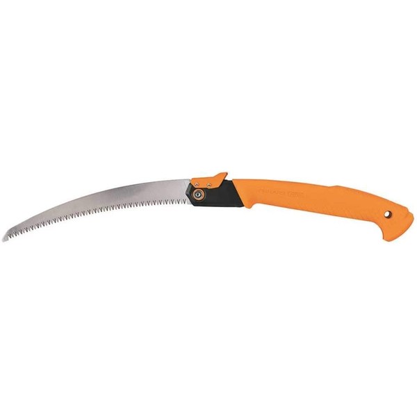 The Fiskars Pro Folding Saw features a curved TaperTooth blade for 2X faster cuts. This lightweight saw won't bind, removing more material with every pull for an easy, efficient way to take down thick branches. Designed for ultimate durability, this impact-resistant saw features a robust handle and locking mechanism that won't disengage, as well as a replaceable, precision-ground, steel saw blade for long-lasting sharpness. Additionally, multiple grip positions with Softgrip touchpoints and a high-visibility handle all translate into a superior ergonomic design, resulting in enhanced comfort and control, as well as reduced fatigue. The simple, heavy-duty construction of these saws makes them a reliable choice for daily, quality performance under all conditions.