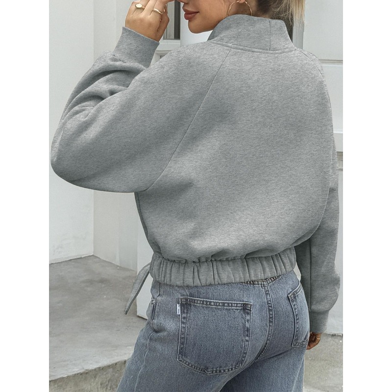 The women's fleece cropped sweatshirt is inspired by the simple and lazy style. It uses soft and skin-friendly fleece fabric to bring a warm and comfortable wearing experience. The classic turtleneck design is windproof and warm, the tie front element adds a playful feeling, and the elastic hem is naturally gathered to modify the body shape without appearing bloated. The loose cropped with long sleeve can easily highlight the proportions. Whether it is paired with high waist pants, skirts or layered jackets, it can show a fashionable layering. It is suitable for daily use, leisure travel or home wear in fall and winter. It takes into account practicality and fashion, and has become a must-have versatile item in the wardrobe.