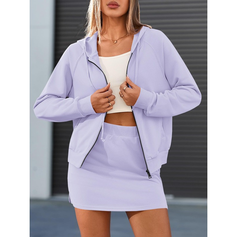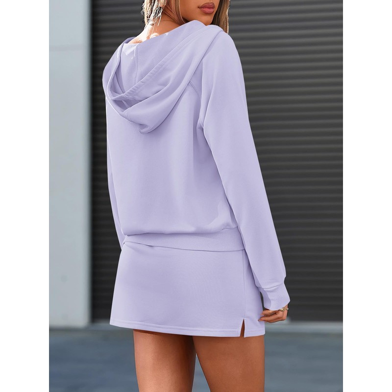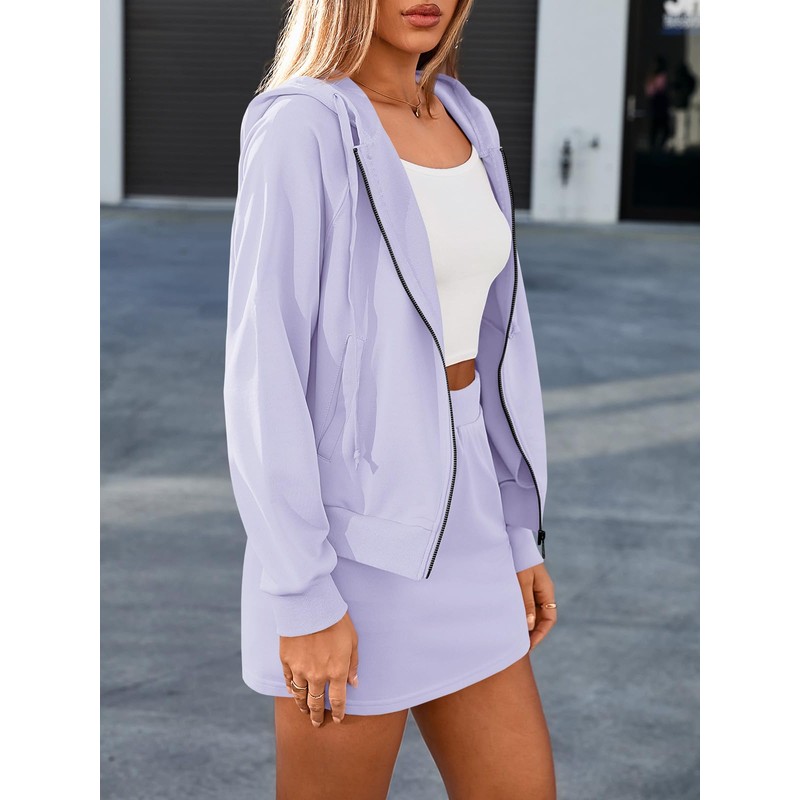 - Sets Chic Design: The set includes an oversized zip-up hoodie for a relaxed fit and easy layering, paired with a high-waisted skort for a sporty yet feminine look. The skort offers the comfort of shorts with the appearance of a skirt