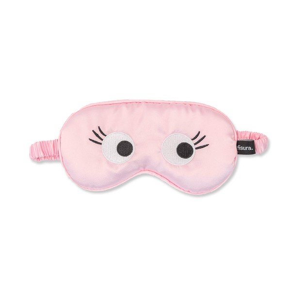 Fisura – Schlafmaske „Augen“ in Rosa. Weiches, komfortables Accessoire für erholsamen Schlaf, mit elastischem Band. Perfekte Geschenkidee für Reisende. Maße: 20 x 10 cm.