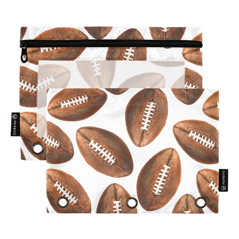Fisyme American Football Ball Pencil Pouch for 3 Ring Binder Pencil Case Pencil Bag Zipper Pouch with Clear Window for Office, 2 Pack