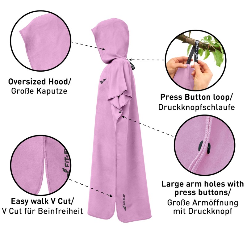 Fit-Flip Surf Poncho, Microfibre, Changing Aid for the Beach, Bath Poncho for Adults, Poncho Towel, Quick-Drying Beach Poncho for Surfers, Ultralight Surf Poncho (Size M, Lilac)