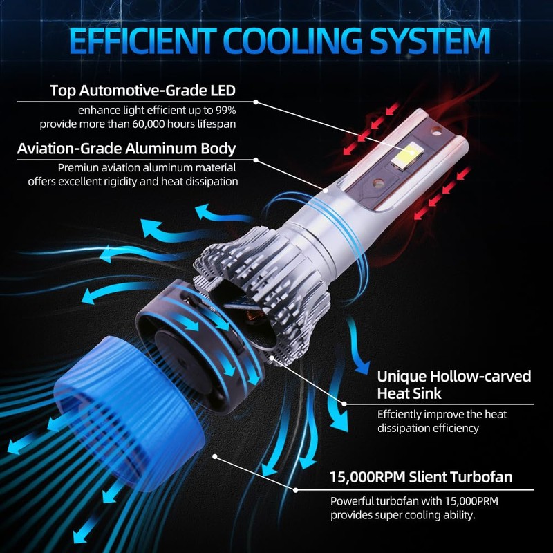 - 【50,000+ Hours Long Lifespan】ROADSUN bulbs is made of aviation aluminum material, which is resistant to high temperature and high pressure, 12,000 RPM silent turbo cooling fan provide super cooling capacity keep the temperature of the bulb at a good temperature and ensure lifespan more than 50,000 hours.
