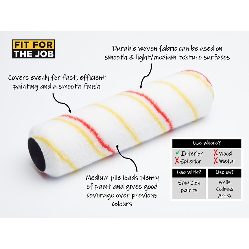 - Medium pile synthetic fabric ideal for emulsion paints (eg. matt, silk, eggshell) on smooth and semi-smooth surfaces such as plaster, drywall and ceilings (including light to medium textured finishes such as Artex)