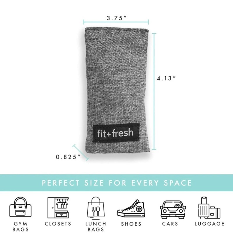 Tired of a stinky lunch bag? The activated charcoal packs by Fit & Fresh are your solution! This set of 4 activated charcoal packs helps eliminate odors and deodorize your lunch Place one inside of your lunch bag to get rid of and prevent bad odors Each pack lasts 90 days Activated charcoal packs are perfect to eliminate odors and deodorize your lunch bag Dimensions 4"H x 3 75"W x 3 5"D