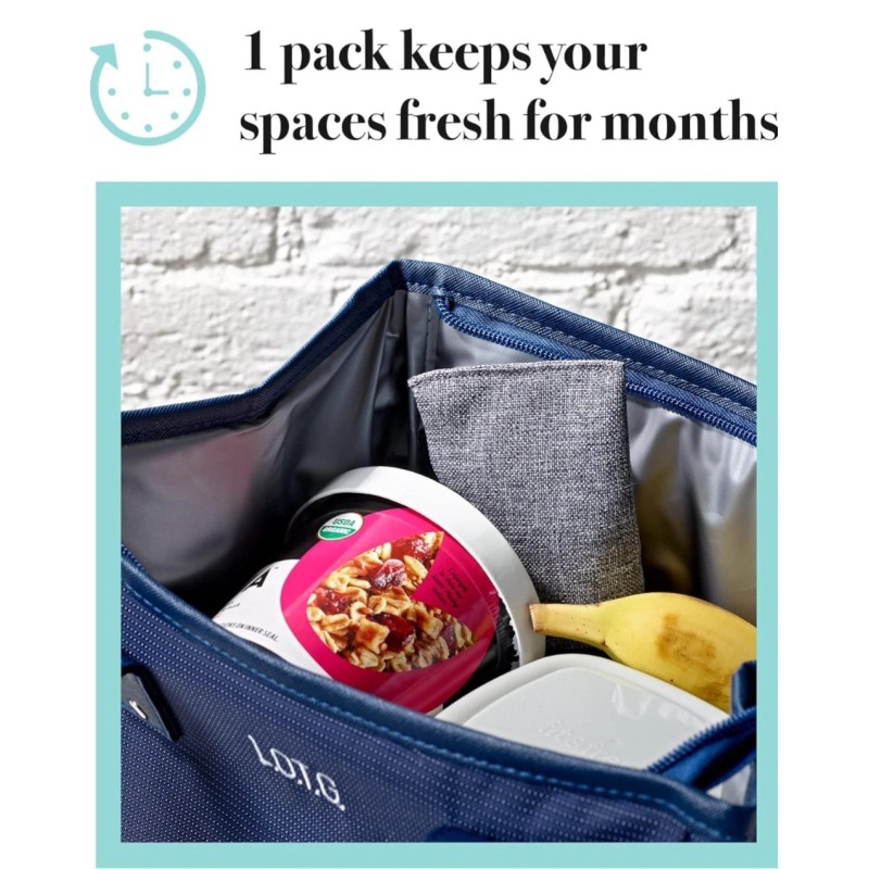 • NO MORE STINKY LUNCH: Set of 4 activated charcoal packs help prevent and get rid of bad odors, mold, and excess moisture in your lunch bag. Each pack measures 4" x 3.75" x 3.75".