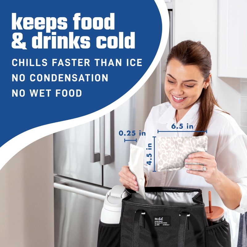 - FEATURES - Includes 2 flexible soft lunch ice packs each measuring 6.5"x 4.25"x 0.5”. Top-quality, stretchy nylon and eco-friendly gel, these reusable ice packs for lunch boxes stay flexible when frozen for insulation to bottles, food and beverages.
