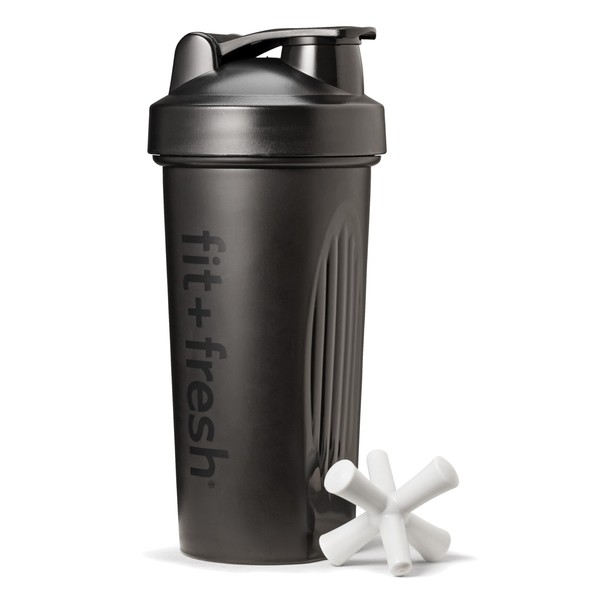 Fit & Fresh Shaker Bottle, Leak Proof Sports Blender Bottle for Protein Mix For Women, Durable Protein Shaker Cup 24 oz.with Unique Agitator for Smooth Mixing, Black