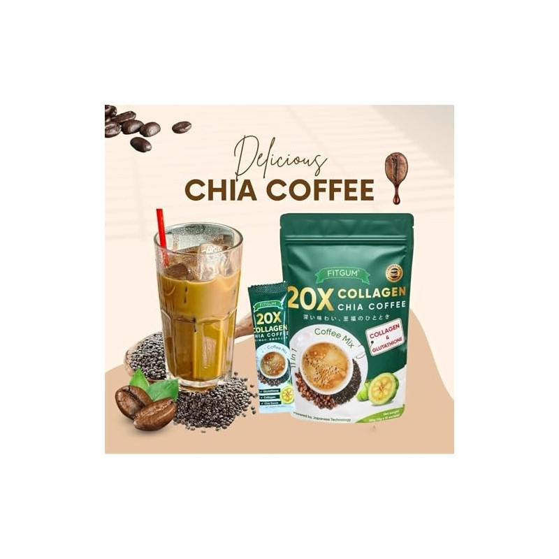 FIT GUM Café 11 en 1 con Colágeno y Chía – 2 Paquetes (10 Sobres c/u) | Mezcla Funcional con 20X Colágeno | Solo 19 Calorías por Porción | Energía y Belleza en Cada Taza