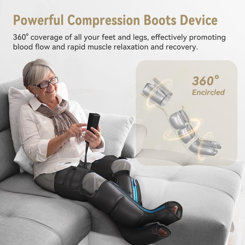 - 360° MASSAGE & THERAPY - Comes with larger airbags and chambers, all your foot, lower calf, upper calf and thigh can be covered and massaged, bring you a further relaxation after working or driving.