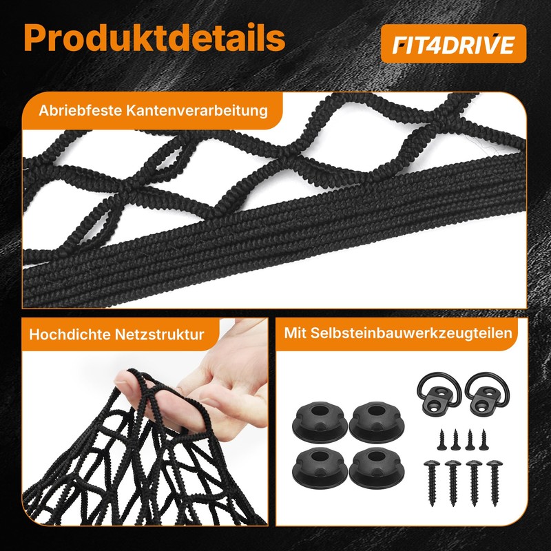 Fit4drive 90 x 30 cm Gepäcknetz Auto Kofferraumnetz für Auto Ladungssicherung, Kofferraum Netz Gepäck Organizer die Aufbewahrung von Ladung, Kleinwaren, Werkzeugen im Stamm von SUVs, Limousinen, Trans