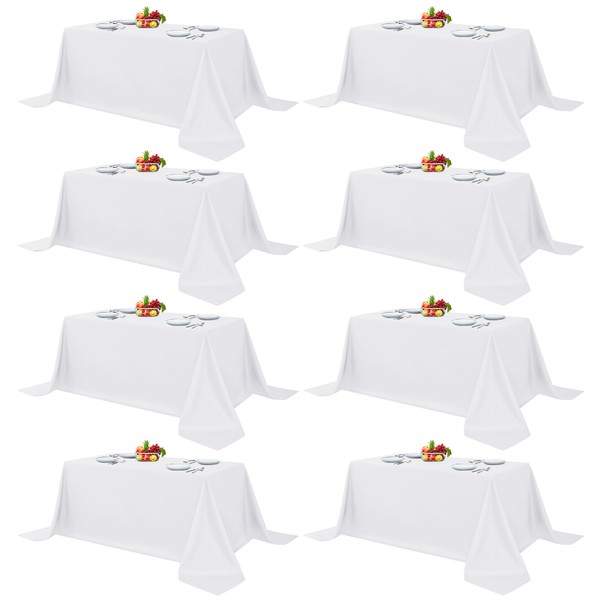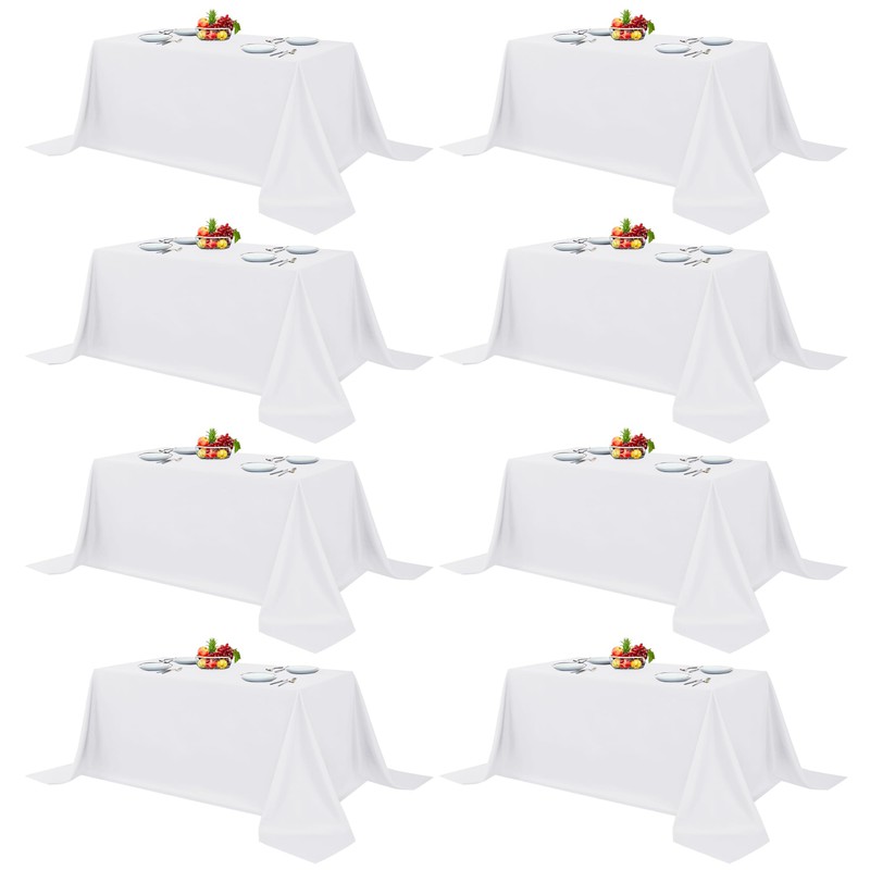 Fitable 8 Pack Rectangle Tablecloths: Stain Resistant Wrinkle Free Circle Table Clothes, Washable Reusable Polyester Table Covers for Wedding Party Birthday Banquet Reception(White, 90x132 Inch)