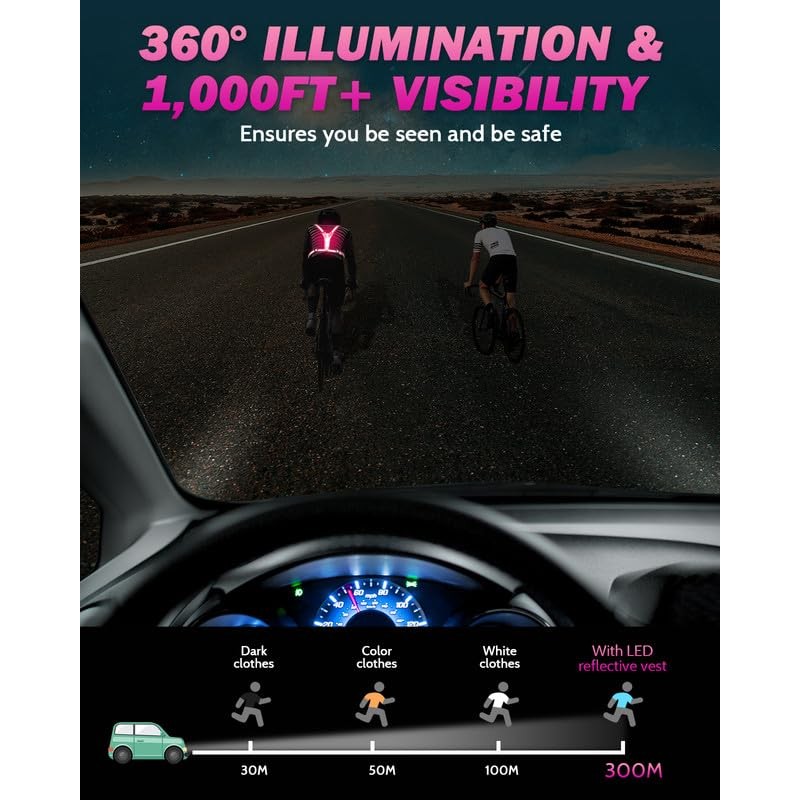 - Ultra- Bright & High Visibility: Fitense LED reflective vest running gear combines high-intensity LED running vest light and reflective straps to provide 360° visibility up to over 1,000 feet. It ensures you remain visible and safe in low-light conditions, enhancing your outdoor experience with peace of mind