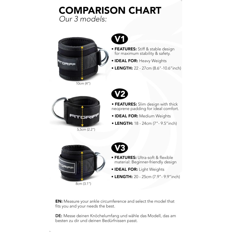 Fitgriff® Ankle Straps V2 for Cable Machine (2 Pieces) - Gym Workout Equipmen...