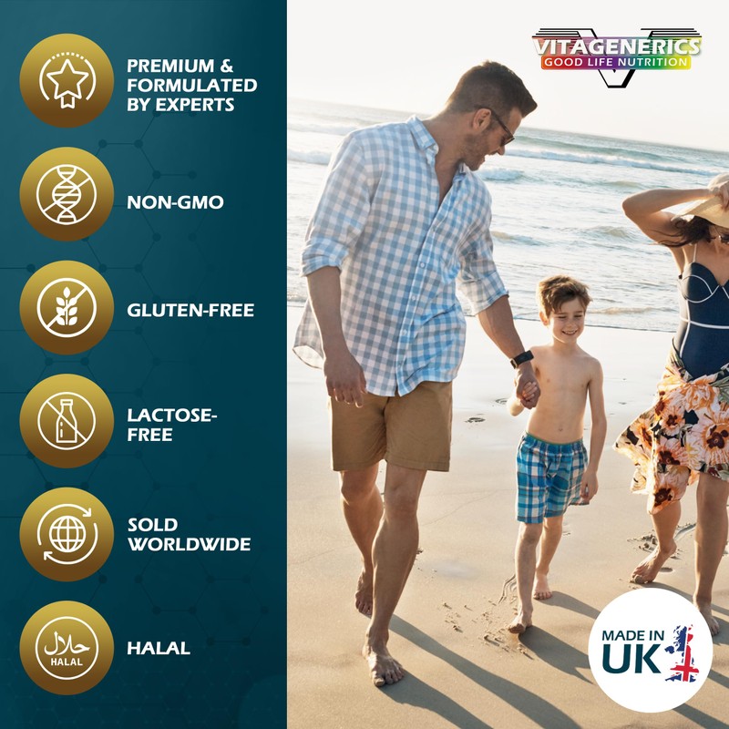 - High-Quality Ingredients, No Compromises C All VITAGENERICS products are manufactured under strict quality controls in the UK to GMP standards and BRC Certified. We use premium ingredients and easy to swallow tablets & capsules, formulated specifically to be taken with food for maximum absorption.