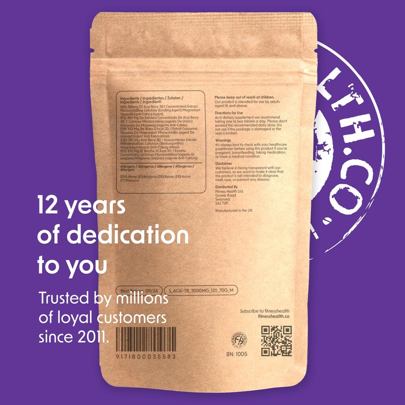 Fitness Health ACAI Berry 3000MG Tablets (120 Tablets) | High Strength 3000mg Berries Extract | Acai Berry Fruits Extract Supplements | | Boost Cognition, Heart & Brain Health | Vegan & Easy Swallow
