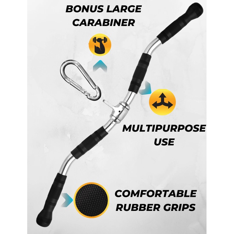 Save money and enjoy your workouts like never before. Target your entire upper and lower body. This superior lat bar attachment does it all in one. It's fantastic for lat pulldowns, cable curl bars, and tricep pulldowns. We prioritize quality - so you can enjoy and focus on your workouts with confidence. Equip your beautiful home gym or fitness center with this top-quality cable attachment for gym!