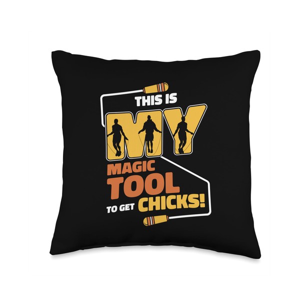 Fitness Jump Rope Gear Apparel Gifts For Beginners My Magic Tool to Get Chicks Speed Skipping Jump Rope Throw Pillow, 16x16, Multicolor
