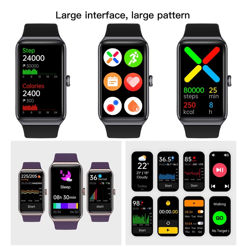 - 24H Health Monitoring, Blood Pressure, Blood Oxygen, Heart Rate tracking and Sleep Monitoring, all the detail data recorded in the App. Equipped with a high-precision sleep monitoring sensor, this sleep tracker can monitor sleep quality accurately, including deep sleep, light sleep, awake periods, effectively helping you improve your sleeping habits, improve sleep quality.