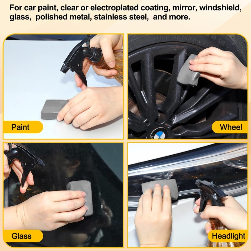- Widely Use - Clay bar can be used for verious parts of car body, such as car paint, clear or electroplated coating, mirror, windshield, glass and clear optical plastics (headlight, tail light), polished metal, stainless steel,carbon fiber, bumper, wheel, exhaust tip, for automotive, motorcycle and more.