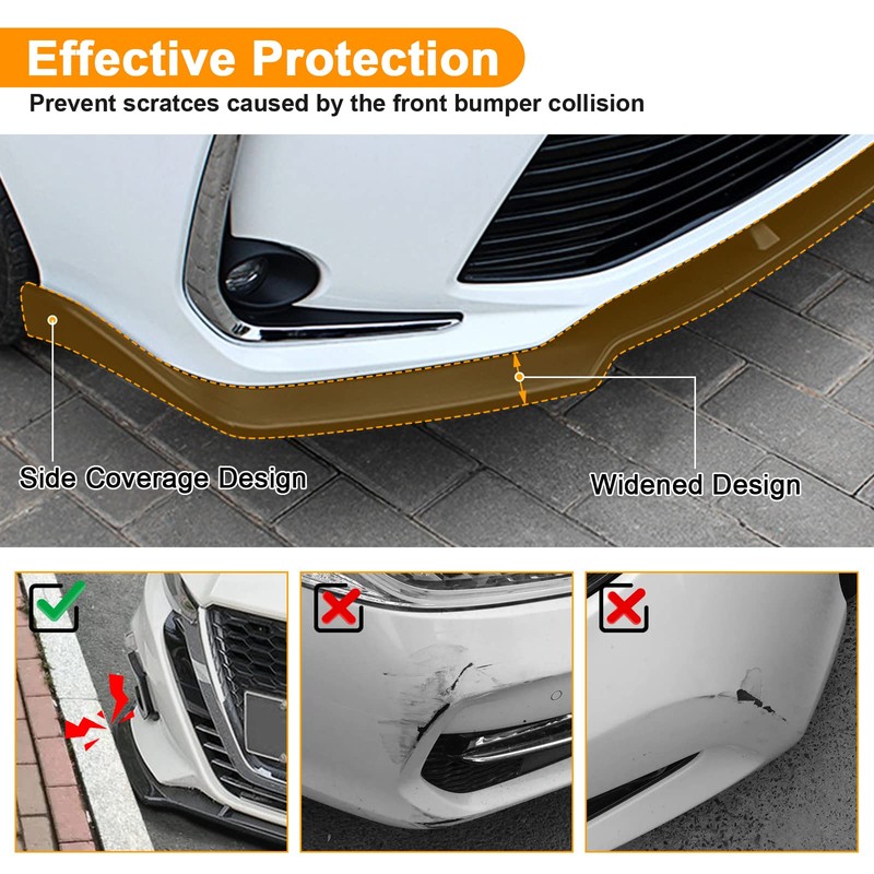 - 【Safety Always FIRST】: Due to the Dynamic shape design and sturdy materials, this front bumper lip not only reduces the wind resistance effectively, but also protects the car from scratches and reduces damage in crashes.