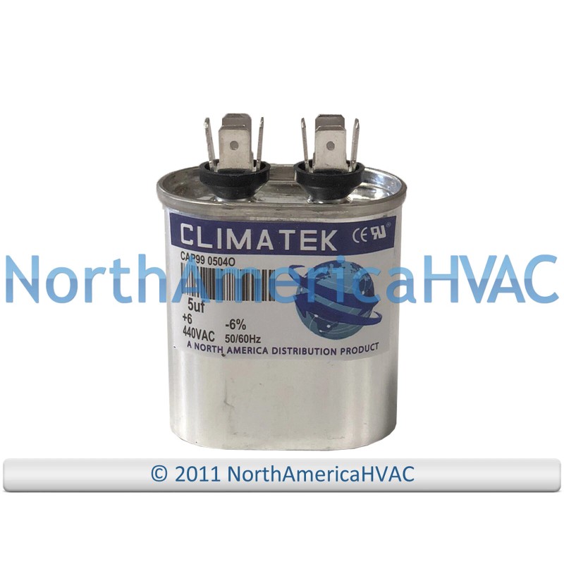 This is a NEW Climatek Motor Run Capacitor. This Single capacitor is rated at 5 MFD/uF, 370/440 Volt and is oval. It replaces the old part numbers listed below.