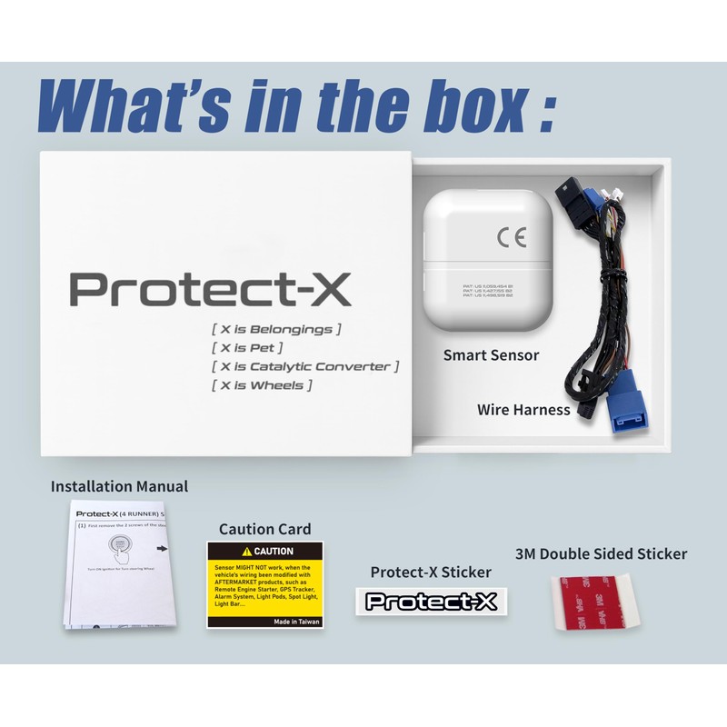 - 4 Main Functions of Protect-X Smart Sensor System: Anti-theft protection for catalytic converter, wheels & rims, window breakage, and window control via the factory remote. One compact solution to protect your vehicle.