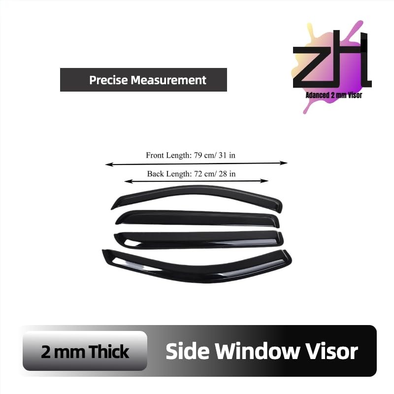- Incredibly Durable ZH Auto Window Deflectors – They are constructed from strong and scratch-resistant acrylic, these window visors are built to withstand the toughest weather conditions while offering protection for a more comfortable ride.