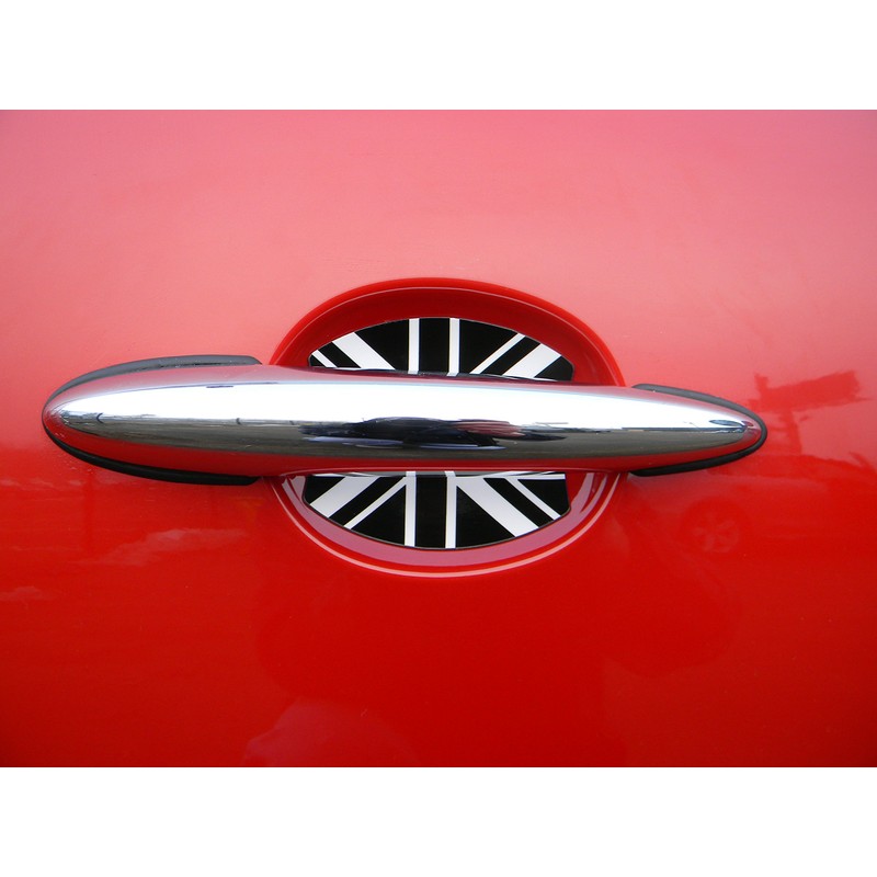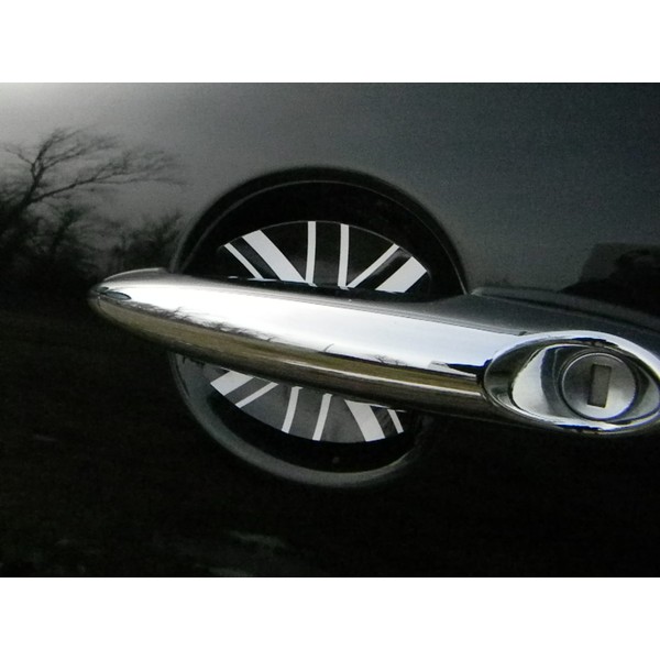 Fits Mini Cooper Black and White British Flag Auto Accessory Door Handle Trim Molding Scratch Cover Guards 4 Door Pack