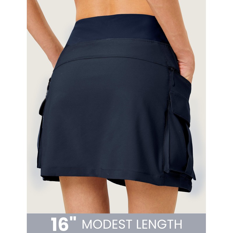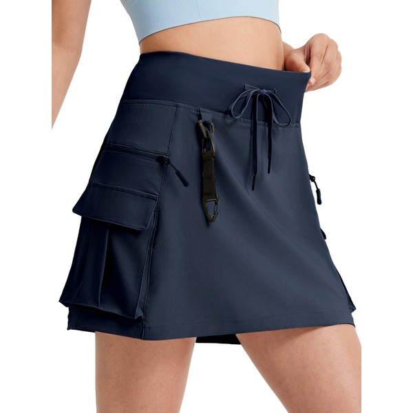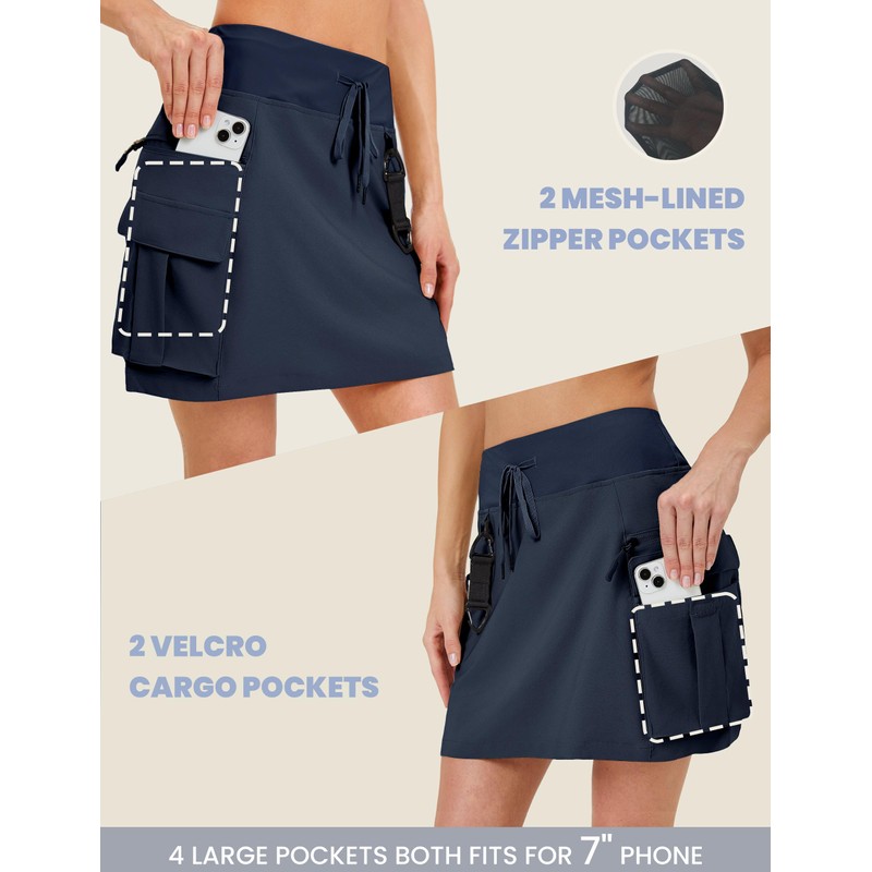 FitsT4 Sports Womens Hiking Cargo Skorts with Pockets High Waisted Dressy Casual Golf Skirts with Shorts Underneath Navy