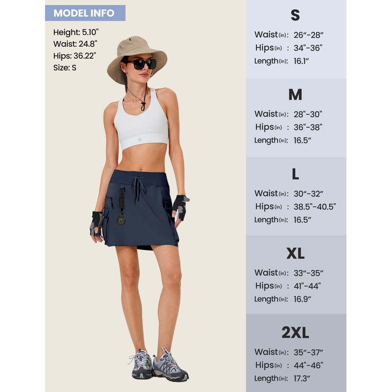 - Ample Storage Space: Skorts for women with pockets make outdoor hiking more convenient. They feature 2 zippered pockets and 2 large Velcro pockets, plus a front loop design for easily attaching a compass or other hiking essentials.