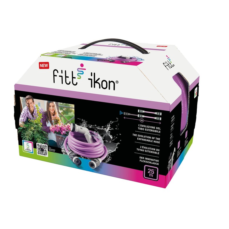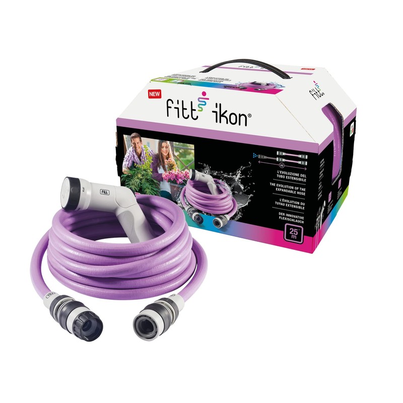 FITT FITT IKON 25 m - Gartenschlauch, ausziehbar, kompakt, leicht und sofort einsatzbereit, mit Multifunktions-Pistole, Lavander