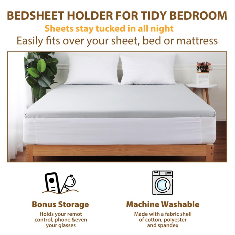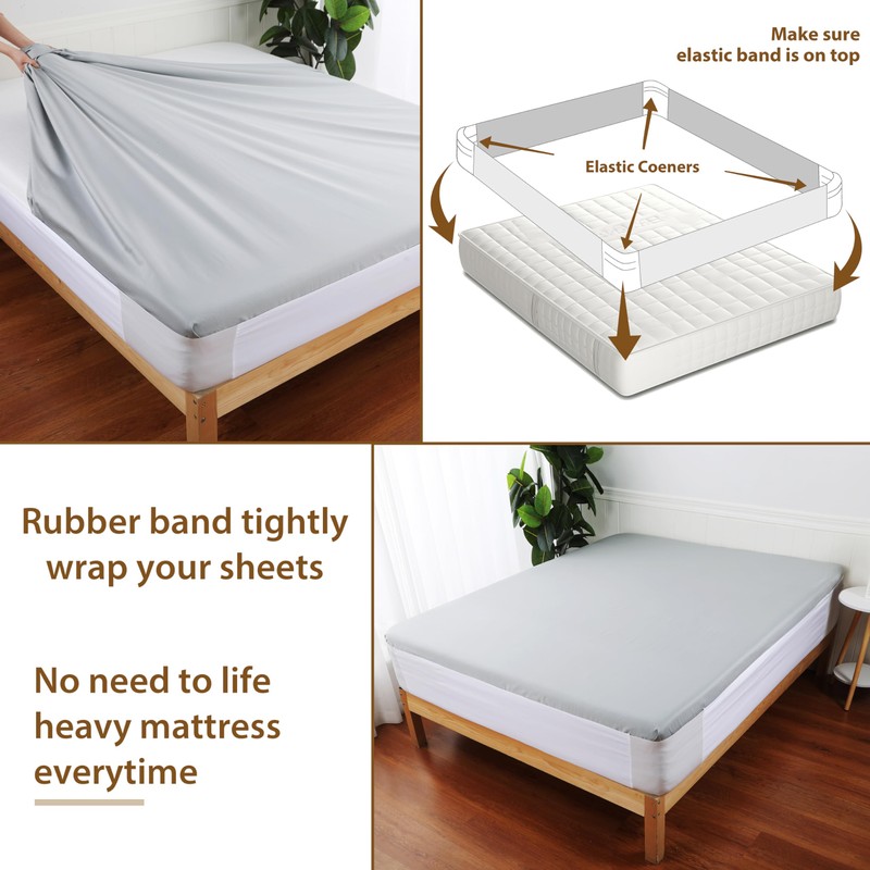- Widely Use: Not only does our bed sheet holder straps keep fitted sheets in place, but it can also be used to secure mattress protectors, mattress toppers, or even tablecloths. The bed sheet strap is versatile accessory that adds convenience and tidiness to various household items.