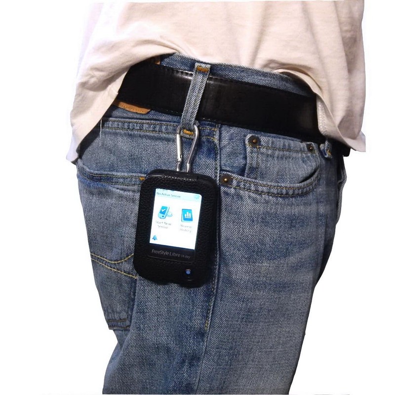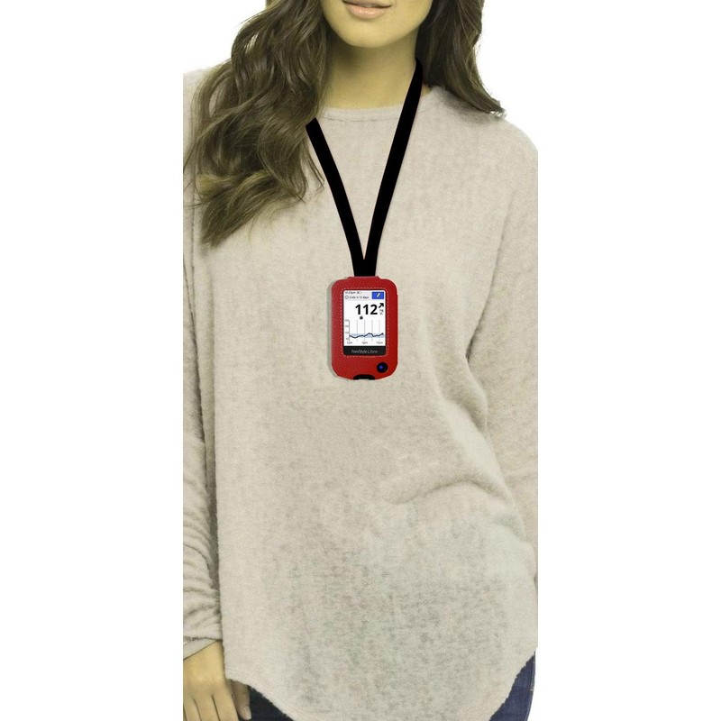 Fitted Leather Case W/Screen Protector & Pocket (Lanyard Included) for Freestyle Libre 3, Freestyle Libre 2 (Red)