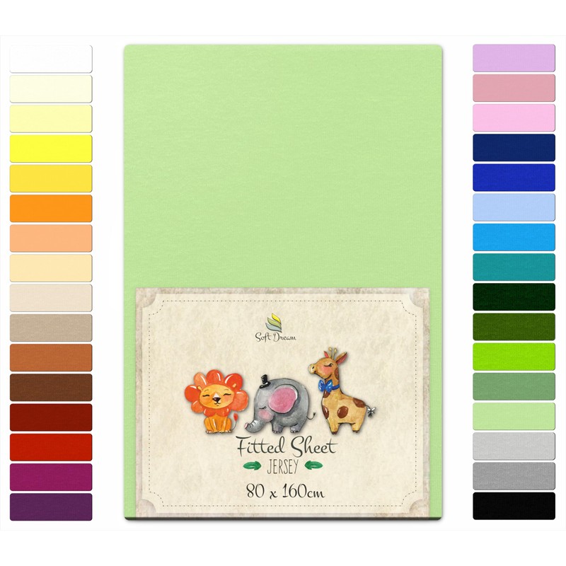 Fitted Sheet 100% Cotton Jersey - 80/200 - 80 x 200 cm, kiwi, 80 x 160 cm