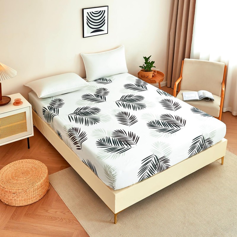 - Exquisite pattern - The simple palm leaves pattern of the fitted sheet matches different decoration styles of your bedroom, perfect for your choice in home decoration.