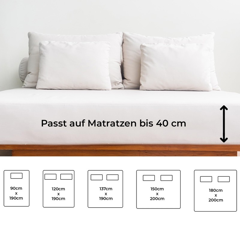 - Fitted sheets for high mattresses: suitable for mattresses up to 40 cm base height, our microfibre sheets offer the perfect fit. Thanks to the fitted sheet with elastic band, you will receive a sheet that does not slip and adapts perfectly to the mattress.