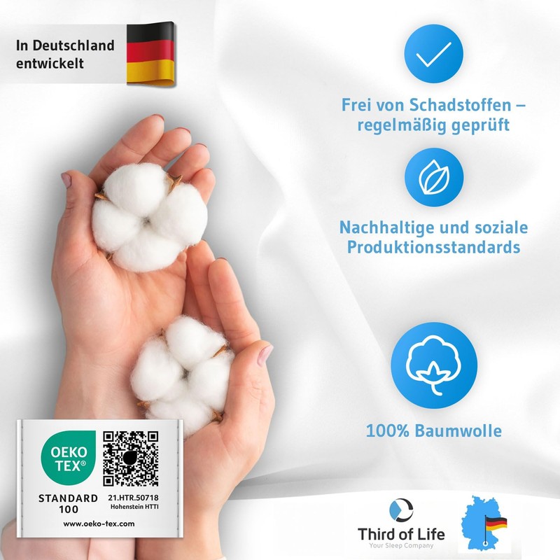 The most important part of a bed is the mattress. But what to do after you get to know and love your dream mattress? At Third of Life, we produce and design everything about good sleep and our goal is to make sleep as comfortable and safe as possible. With our fitted sheet, you can look forward not only to soft, Oeko-Tex and GOTS tested materials, but also sweet dreams.