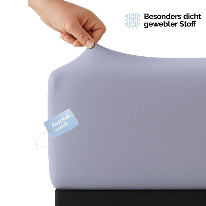 This high-quality fitted sheet made from 100% jersey cotton offers ideal comfort and a perfect fit for mattresses in sizes 90 x 200 to 100 x 200 cm and a mattress height of up to 30 cm. The elastic all around elastic ensures that the sheet sits firmly and does not slip, no matter how restless you sleep.