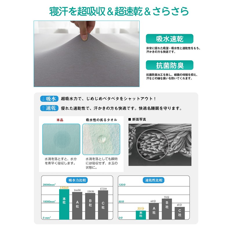 • Super Absorbent and Quick Drying: With its excellent absorbency and breathability, this fitted sheet does not cling even if you sweat. It continues to feel smooth and dry.It is resistant to stuffiness, and allows you to sleep comfortably at all times of year.This sheet is stain resistant and gentle on the skin, providing a good night’s sleep.Washable at Home: This sheet has the durability to stand up to washing. You can wash it in your washing machine at home and keep it clean at all times.We recommend purchasing two or more so that you have an extra sheet available for when one is in the wash